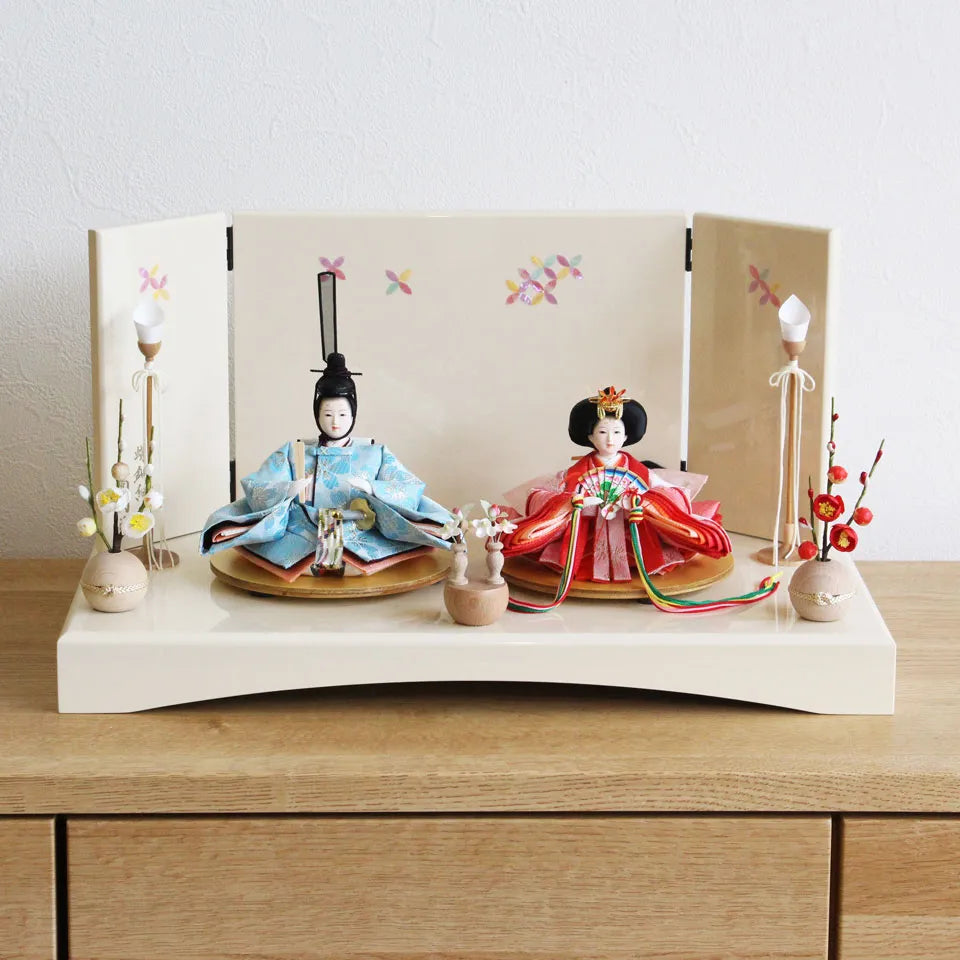 "子は宝"という想いを込めた横手人形のオリジナル雛人形「子宝雛」。着物に刺繍されている金の糸には、お子様に訪れる多くの幸せを表し、鶴はご家族のみなさんであり、将来出会う人々や経験を表現しています。お子様の人生を見守り、育てる雛人形を丹精込めてつくりあげました。