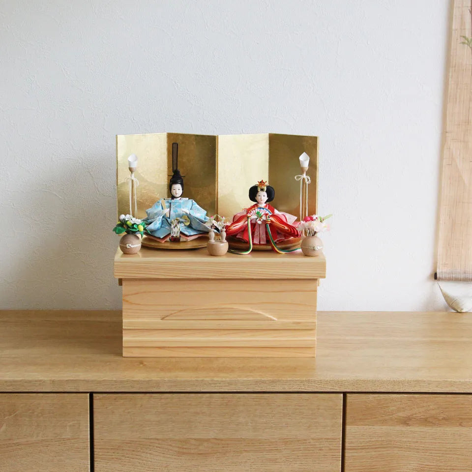 "子は宝"という想いを込めた横手人形のオリジナル雛人形「子宝雛」。着物に刺繍されている金の糸には、お子様に訪れる多くの幸せを表し、鶴はご家族のみなさんであり、将来出会う人々や経験を表現しています。お子様の人生を見守り、育てる雛人形を丹精込めてつくりあげました。