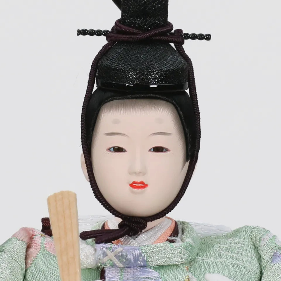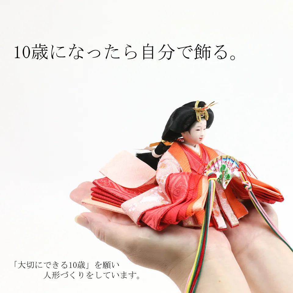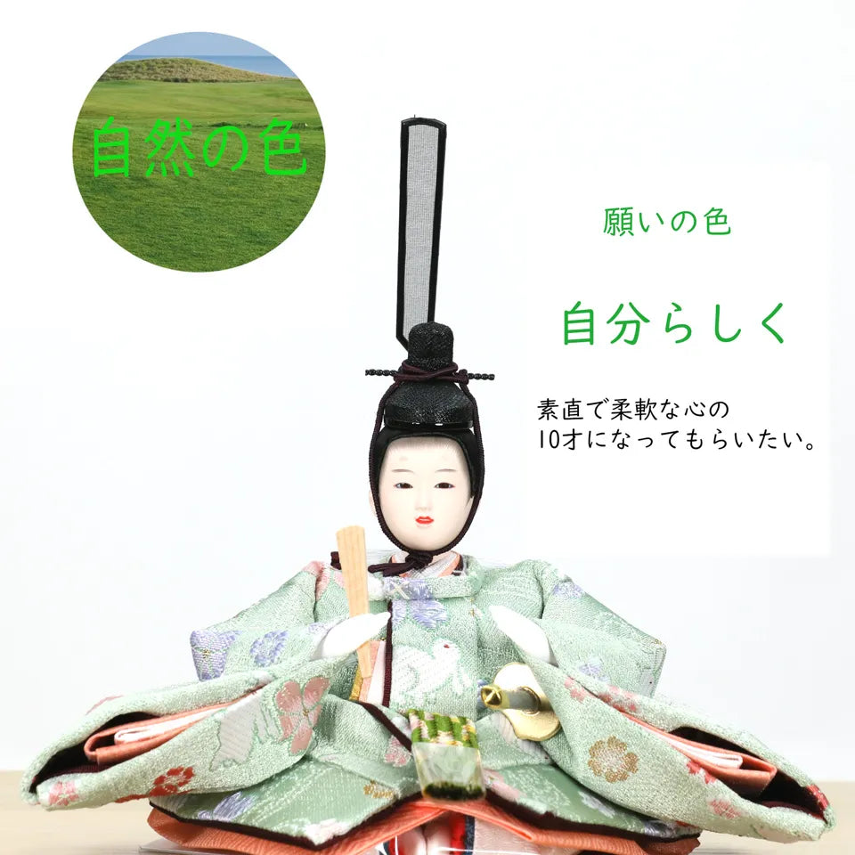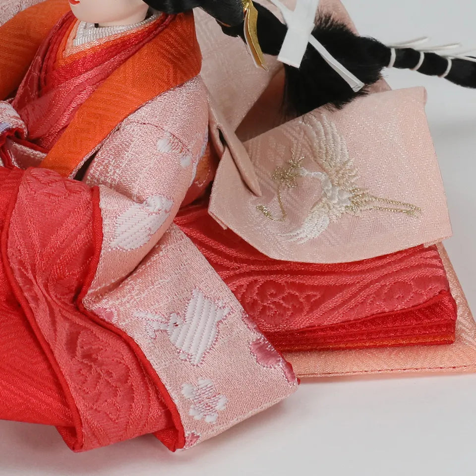 "子は宝"という想いを込めた横手人形のオリジナル雛人形「子宝雛」。着物に刺繍されている金の糸には、お子様に訪れる多くの幸せを表し、鶴はご家族のみなさんであり、将来出会う人々や経験を表現しています。お子様の人生を見守り、育てる雛人形を丹精込めてつくりあげました。