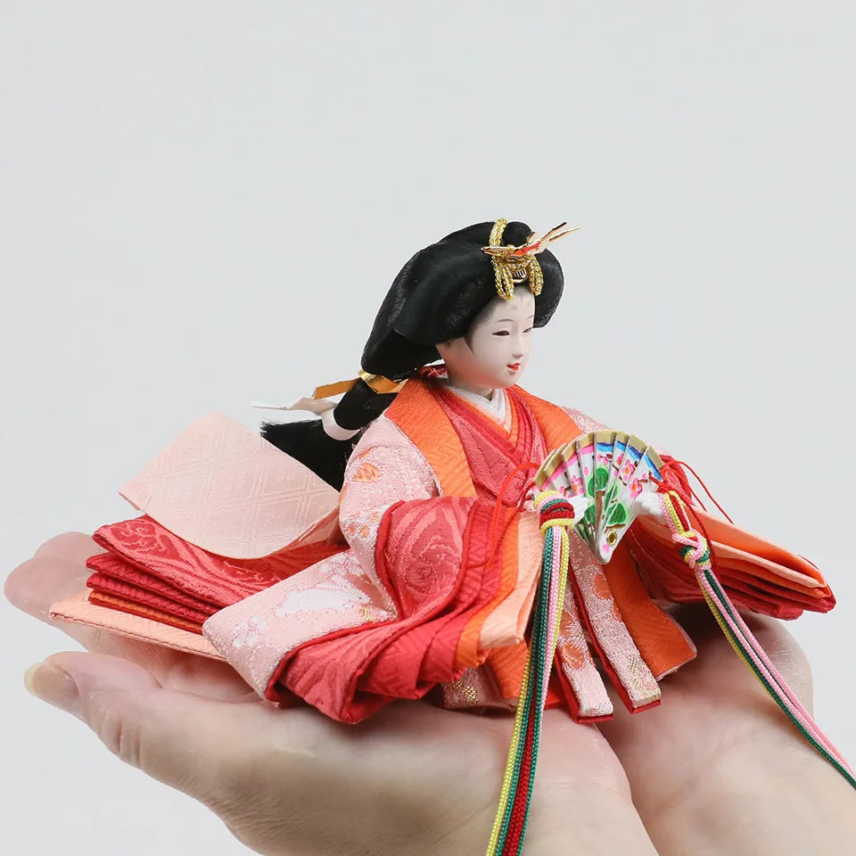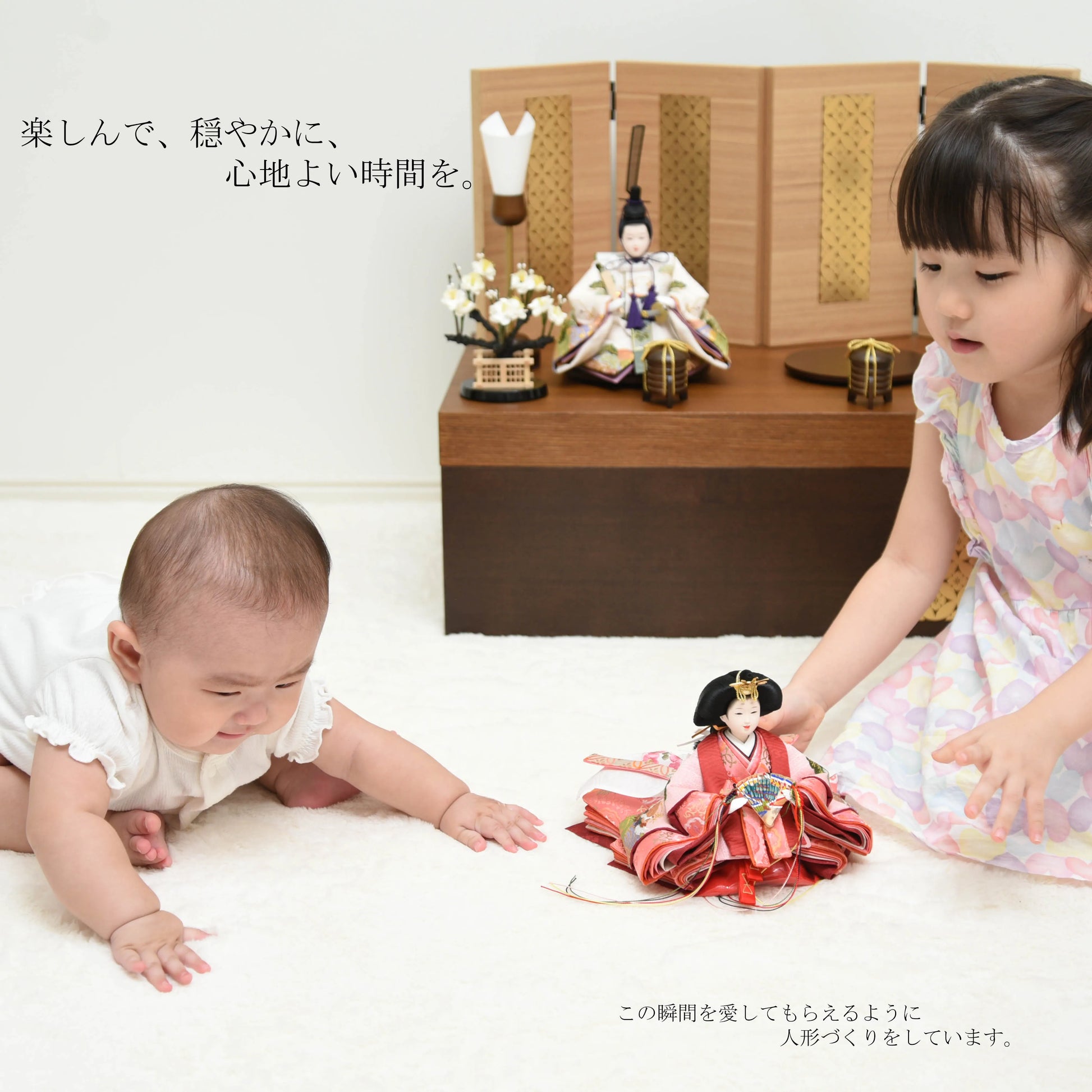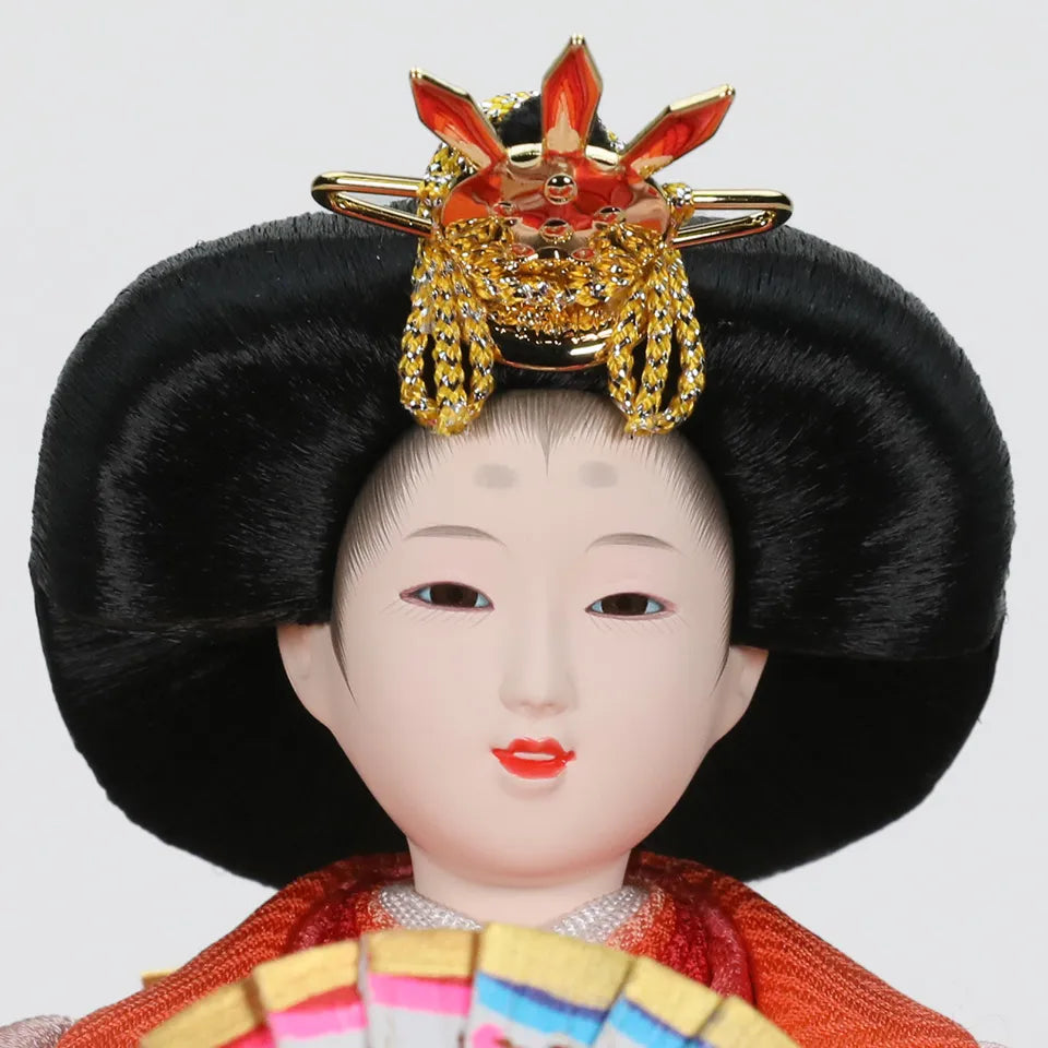 "子は宝"という想いを込めた横手人形のオリジナル雛人形「子宝雛」。着物に刺繍されている金の糸には、お子様に訪れる多くの幸せを表し、鶴はご家族のみなさんであり、将来出会う人々や経験を表現しています。お子様の人生を見守り、育てる雛人形を丹精込めてつくりあげました。