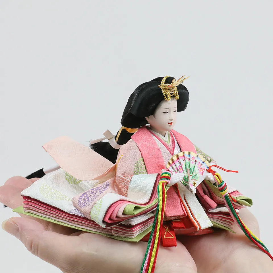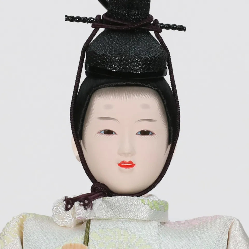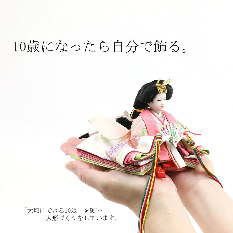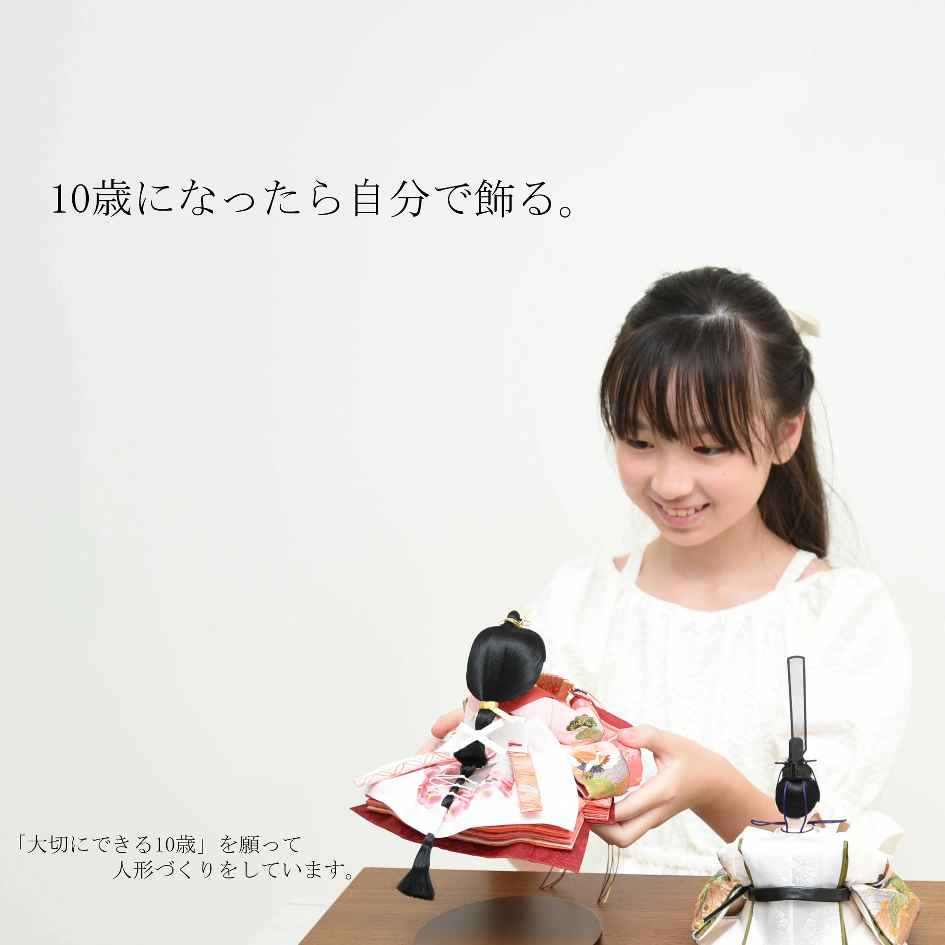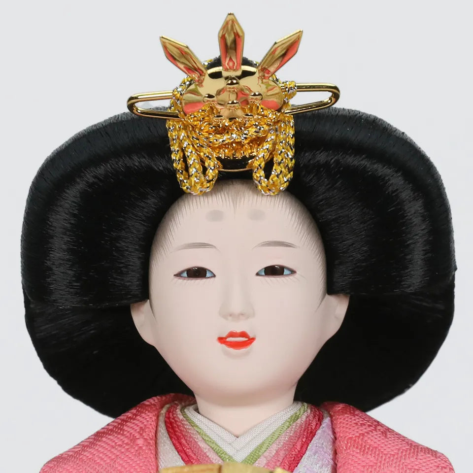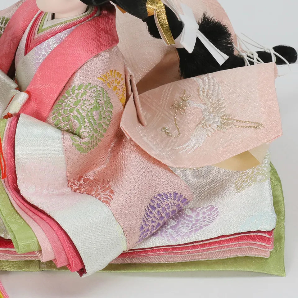 "子は宝"という想いを込めた横手人形のオリジナル雛人形「子宝雛」。着物に刺繍されている金の糸には、お子様に訪れる多くの幸せを表し、鶴はご家族のみなさんであり、将来出会う人々や経験を表現しています。お子様の人生を見守り、育てる雛人形を丹精込めてつくりあげました。